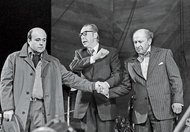 8 декабря свое 80-летие отмечает народный артист РФ - Евгений Стеблов. Поздравление от художественного руководителя "Et Cetera" - Александра Калягина: Уважаемый Евгений Юрьевич! Дорогой Женя! От всей души поздравляю тебя с юбилеем! Я желаю тебе здоровья, здоровья, здоровья! Ты потрясающе талантливый артист, все твои роли в театре и в кино были выдающимися. Я помню, когда мы вместе летели на гастроли, при твоем появлении в салоне самолета, тебе стали аплодировать. Почитателей твоего таланта очень-очень много. Твоя первая роль, сыгранная еще студентом нашего Щукинского училища, в легендарном фильме «Я шагаю по Москве» помнят даже те, кто родился через несколько десятилетий, после его выхода. Перечислять и вспоминать все твои роли, сыгранные на сцене и в кино, я не стану, их слишком много. И все они, повторю, выдающиеся...